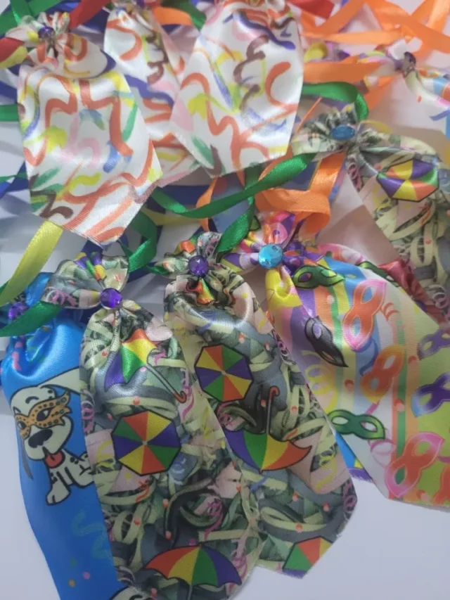 G7301 GRAVATA DECORATIVA CARNAVAL-11 CM– ESTAMPAS DIVERSAS– COM FITA E LINHA– CAIXA COM 30 UNIDADES