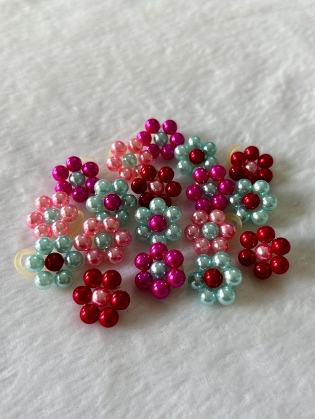 - FLORZINHA FEITA COM PÉROLAS COLORIDAS