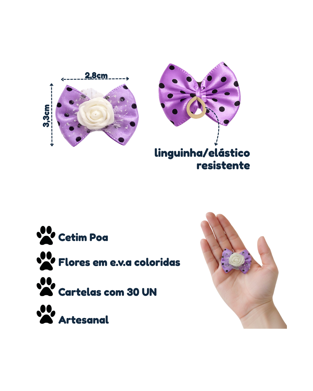 - L11637 LAÇO CETIM POA C/FLOR E.V.A – 30 UN