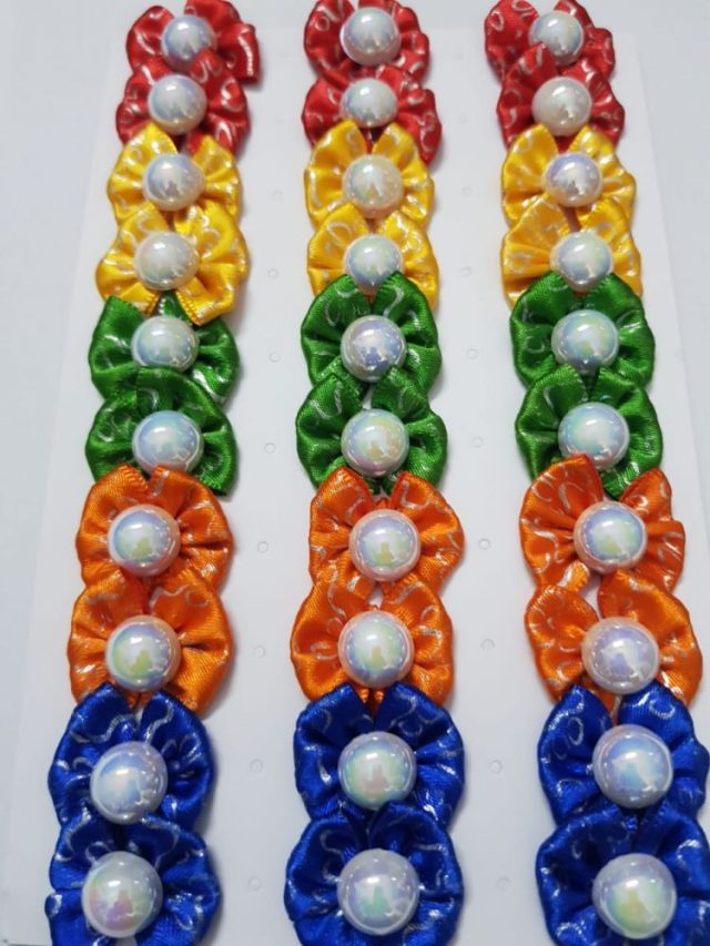 – LAÇO ESTAMPADO PRATA COM PÉROLA– FEITO COM LINHA– COM LIGA– CARTELA COM 30 UNIDADES