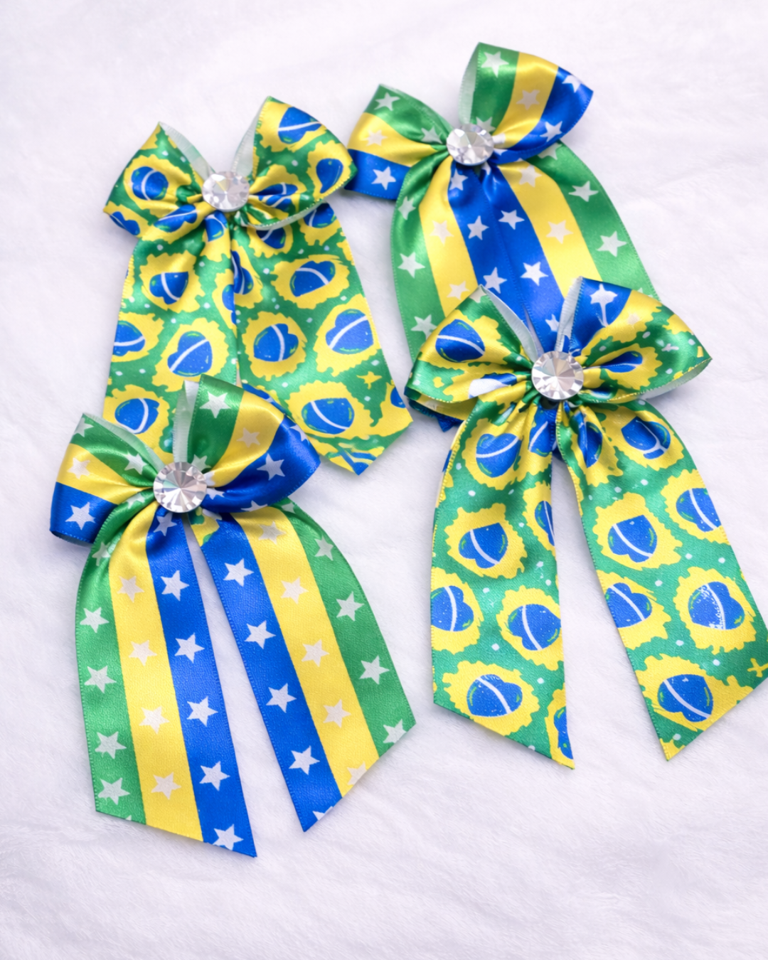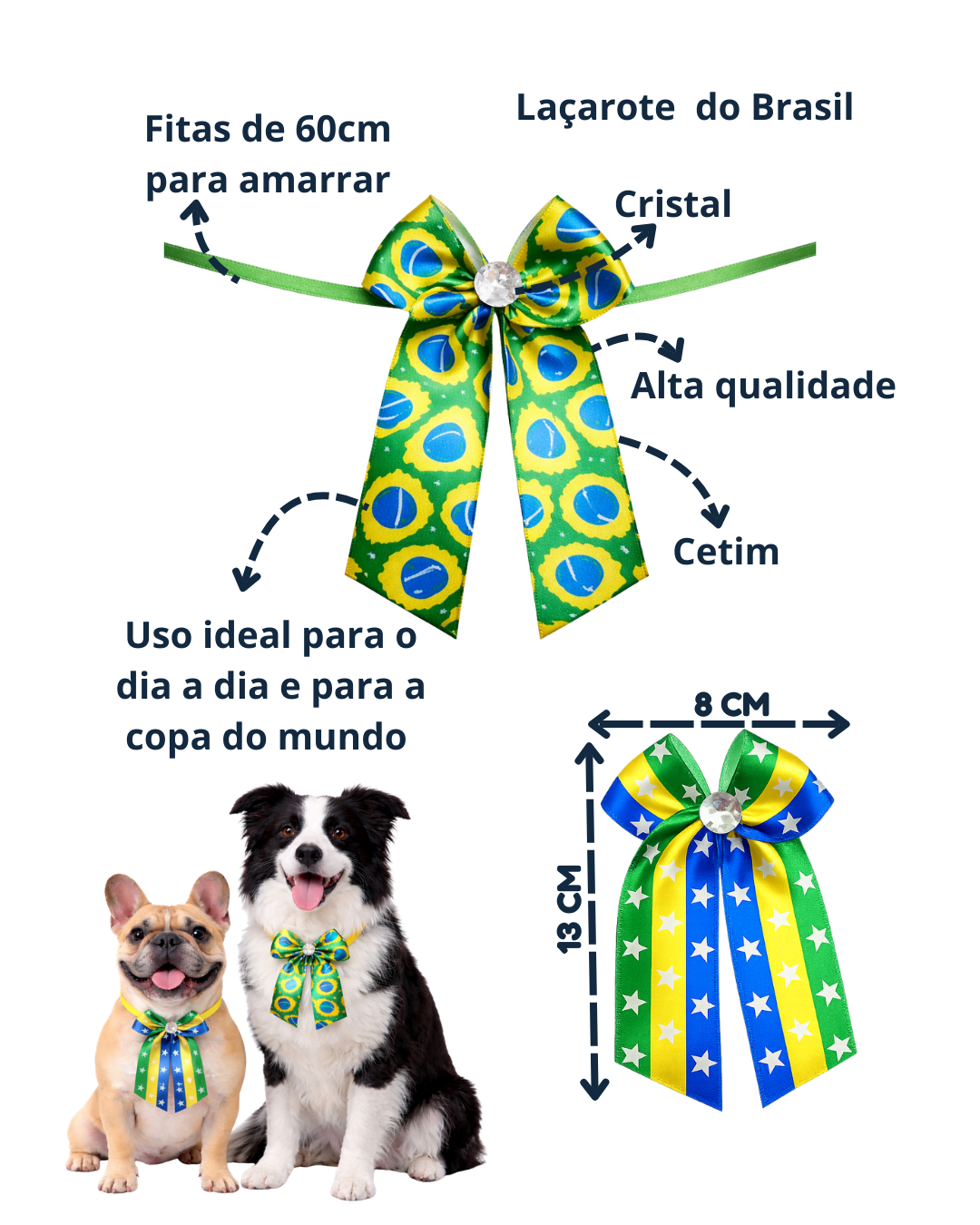 Laço pet temático do Brasil feito em cetim de alta qualidade, perfeito para deixar seu cachorro estiloso em qualquer ocasião.