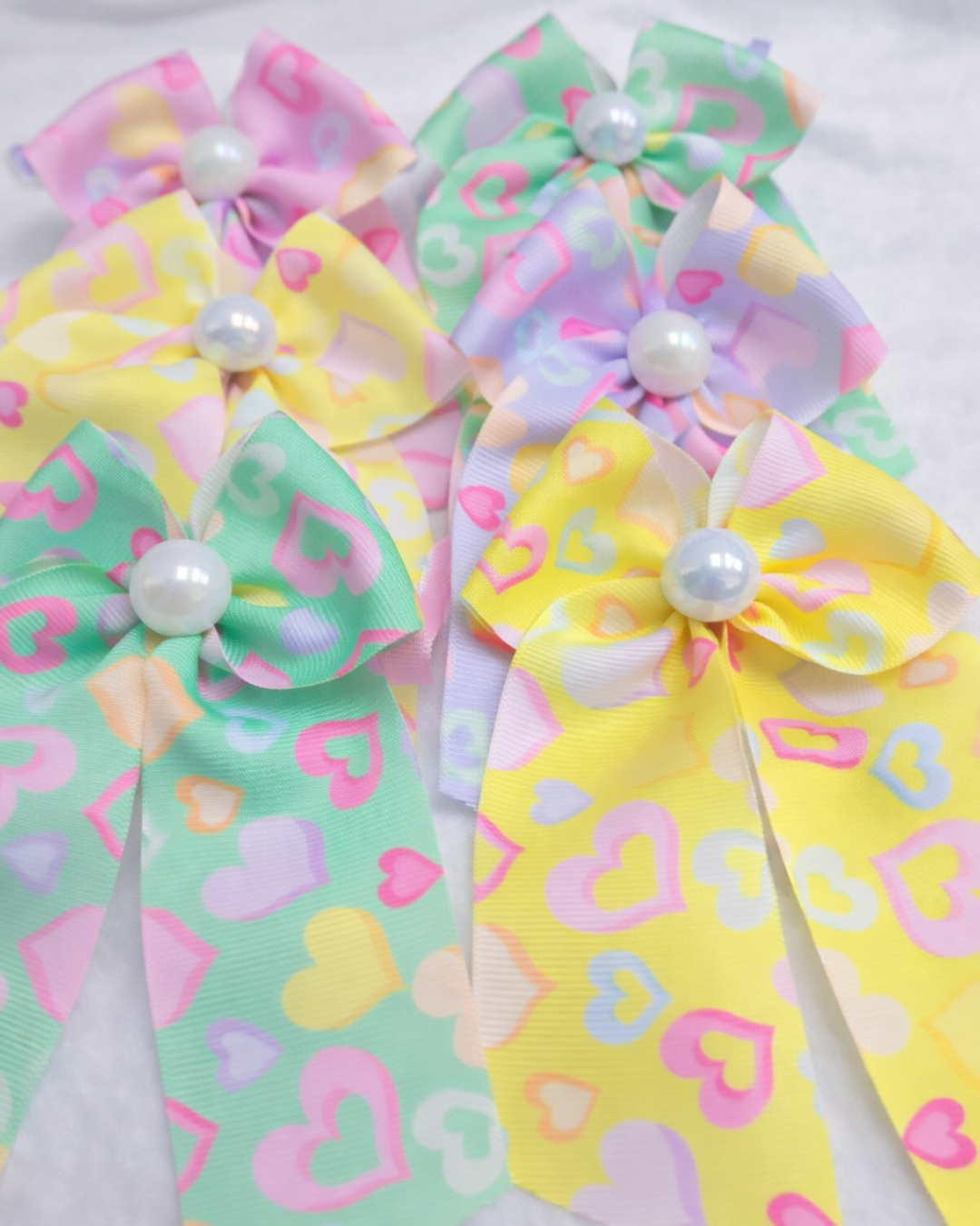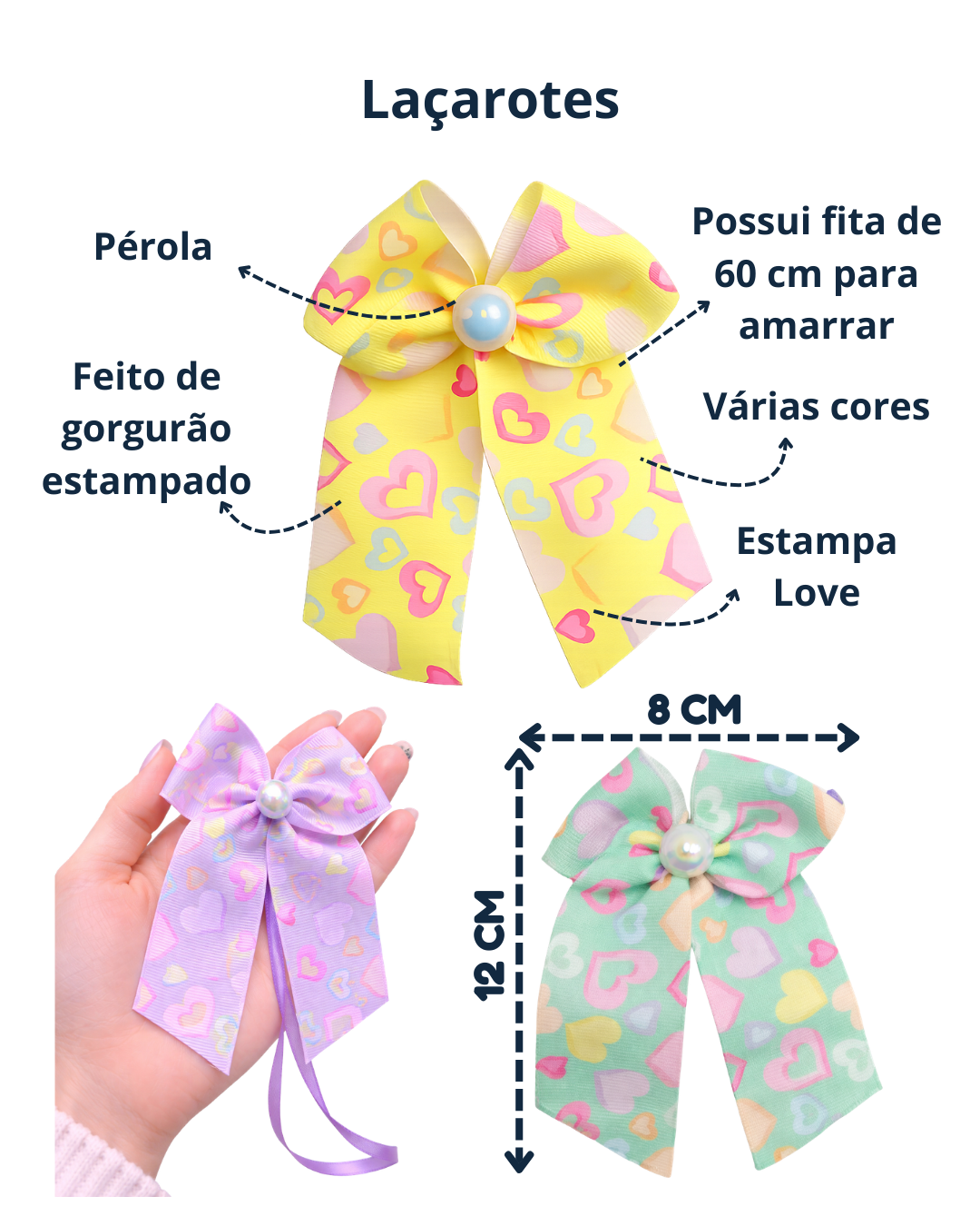 Produzido em fita de gorgurão estampado com delicados corações (estampa Love), esse modelo conta com acabamento impecável e uma linda pérola central que traz um toque sofisticado.