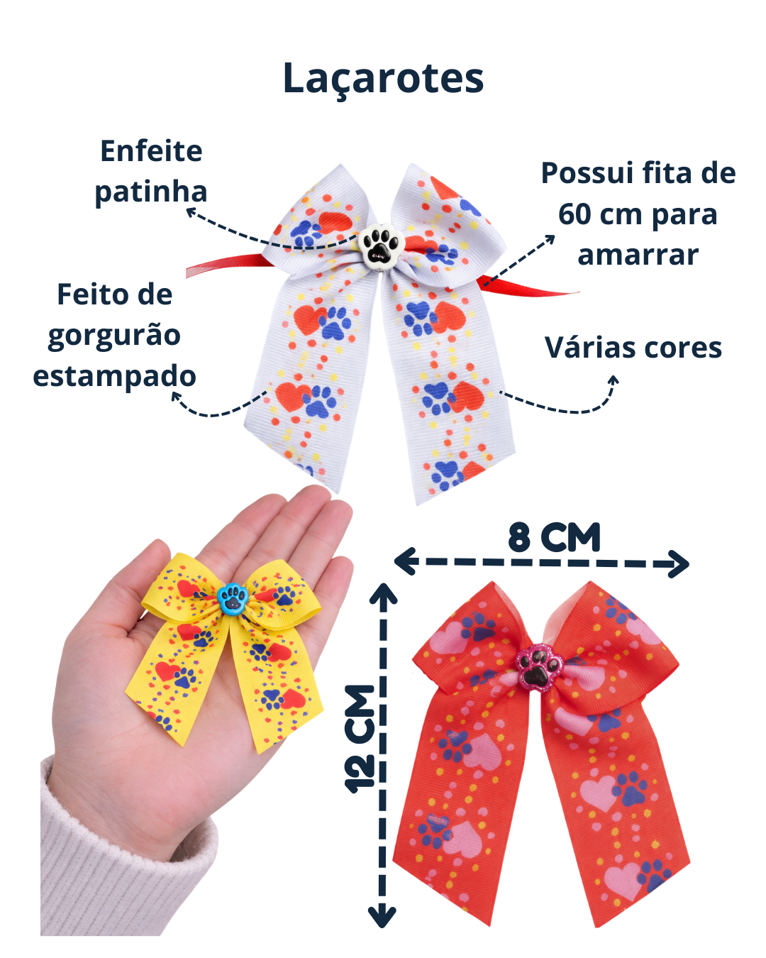 Deixe seu pet ainda mais encantador com esse lindo laçarote estampado com patinhas 🐾!