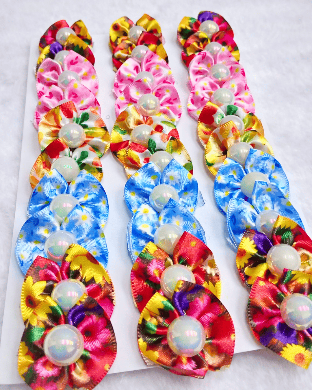 Deixe seu pet ainda mais elegante com esses lindos laços estampados com detalhe de pérola ✨